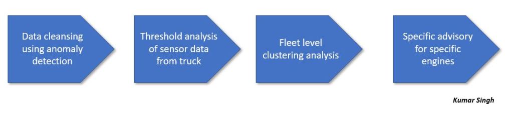 The alternative would be to rewrite these legacy analytics in newer languages such as R, Python, Java, Node.js, or Go. In addition, multiple analytics may need to be orchestrated to create the end-to-end analytics workflow. An example of such a workflow for truck data could be the one shown here: