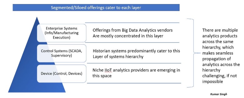 As you can see, most historians also only interface in a siloed way, which essentially takes away the true potential of leveraging these analytics solutions. There are multiple analytics products across the same hierarchy, which makes seamless propagation of analytics across the hierarchy challenging, if not impossible.