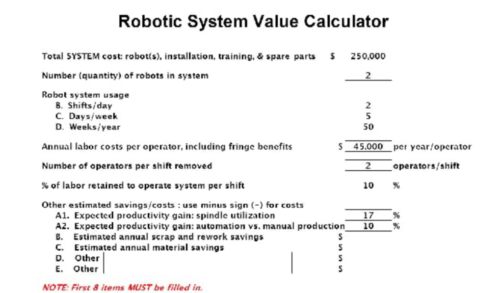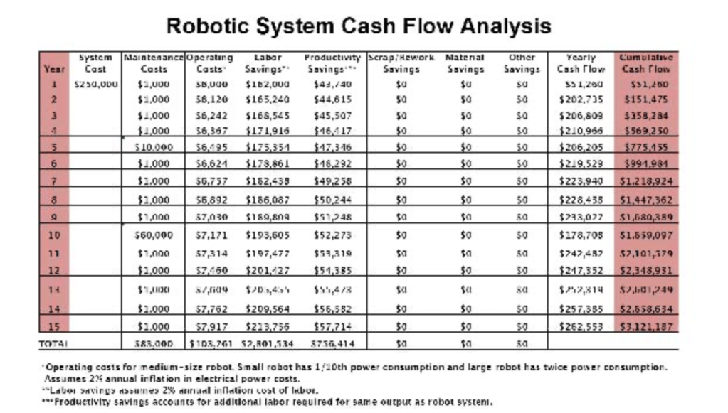 To illustrate this further, let us use a couple of elements from the four elements highlighted in the first part of this article. This will help highlight why robotics investment is much more complicated than the worksheet above.