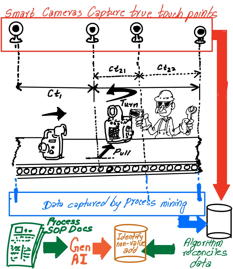 This article is the third part of a three-part article series. In the first part we discussed the drawbacks of current process of VSM design. In this second part of the article, we explored what value stream mapping is about, the critical aspects that need to be captured, and how process mining forms the foundation for many digital VSM tools. In the third and final part, we will explore shortcomings in the process mining approach and understand how AI can help address those shortcomings.