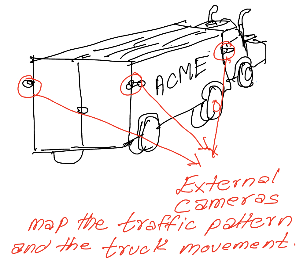 Smart cameras and sensors fitting on the outside of the truck capture data simultaneously.