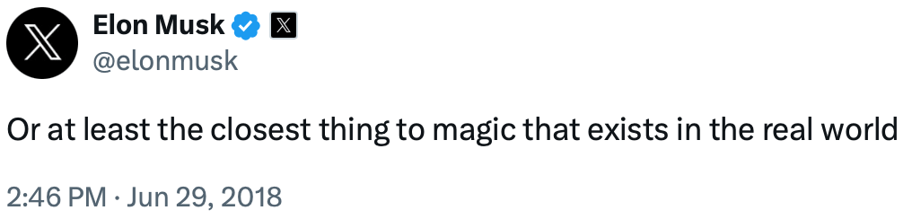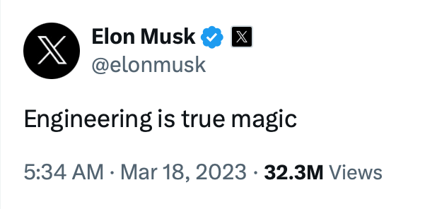 Elon Musk, over the years, has insisted that engineering is magic, or a capability closest to magic available to mankind.