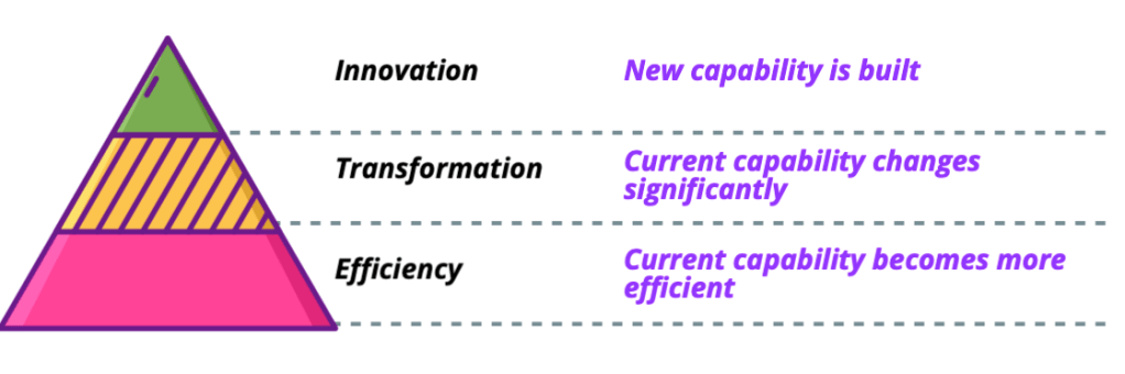 When formulated honestly, AI roadmaps are reality checks. And they are also the most important planning weapon in your decade-long journey to become a Generative AI-powered organization. In my most recent research report, “Innovating With the Cloud“, I highlighted that cloud-enabled capabilities follow three stages, as shown in the illustration below.