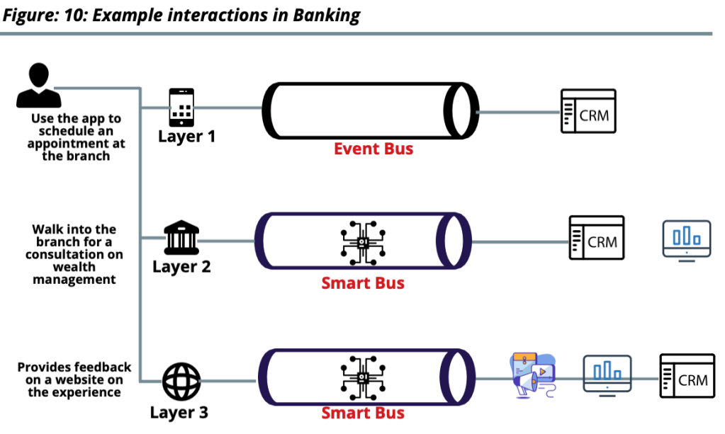 The good news is that businesses do not need to replace these existing systems. The crux of the platform approach is to integrate these systems, leveraging existing, and emerging technologies, in a way that allows organizations to harness technology beyond operational and informational aspects, into strategic aspects. Let us explore this perspective with an example interaction from the complete architecture shown in Figure 9.