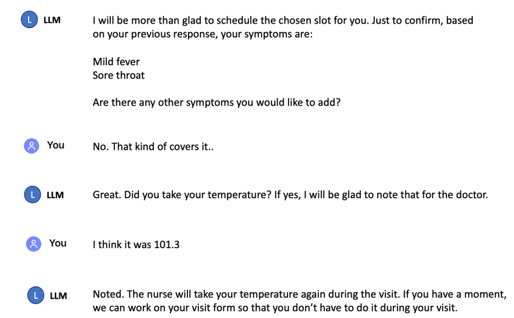 Well, the conversation will continue, but you get the gist. This LLM, provided as a tool by the healthcare provider, will aid in patient management aspects that do not require significant expertise. The key is to understand what tasks the patient needs help with during their interactions with the provider.