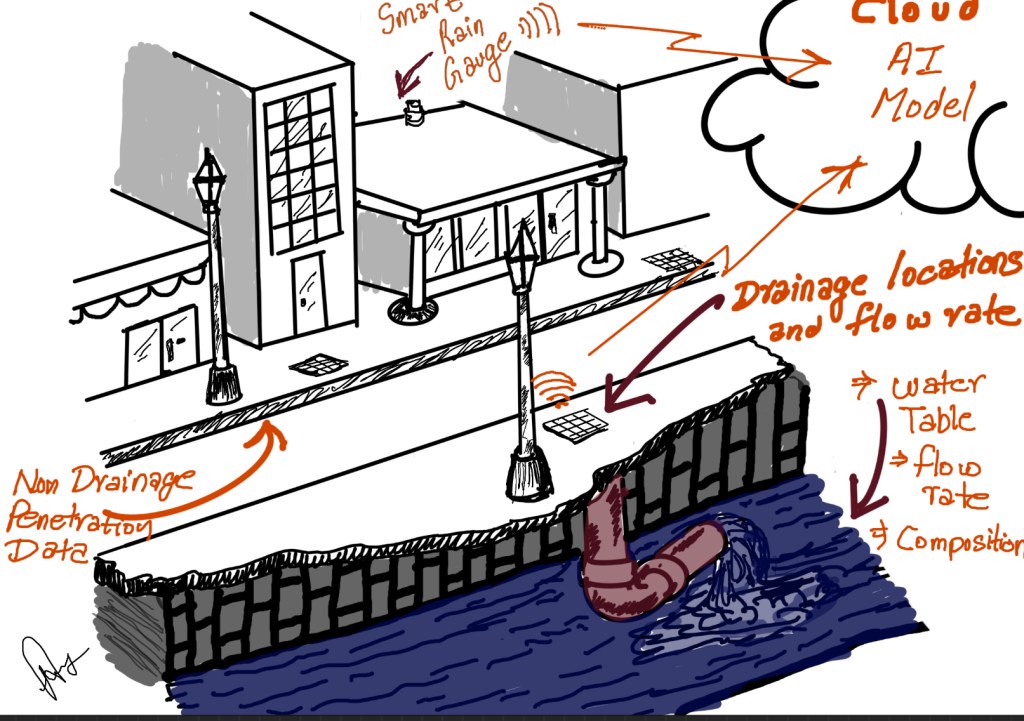 In the areas that do allow water to percolate into the ground, there will be sensors to measure the percolation amount, flow, and properties of the soil medium. Similarly, there would be equipment to capture the groundwater table into which the water will eventually percolate. All that data being captured by these equipment and sensors will be relayed directly to a digital twin model hosted in the cloud.