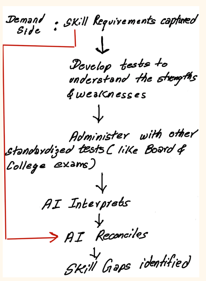 Leveraging these defining traits, you will have to develop very brief tests. The fact is that if designed properly, a 15-20 minutes test can capture the aptitude, unlike the aptitude tests that are typically administered in India. Note here that the approach means that there will be hundreds of versions of such tests, focused on various top skill needs. Hundreds, but short and crisp tests. These tests can then be administered with university and college exams. All you have to do is to let students know that this will provide data to create a national skill alignment initiative, to help graduates get jobs.