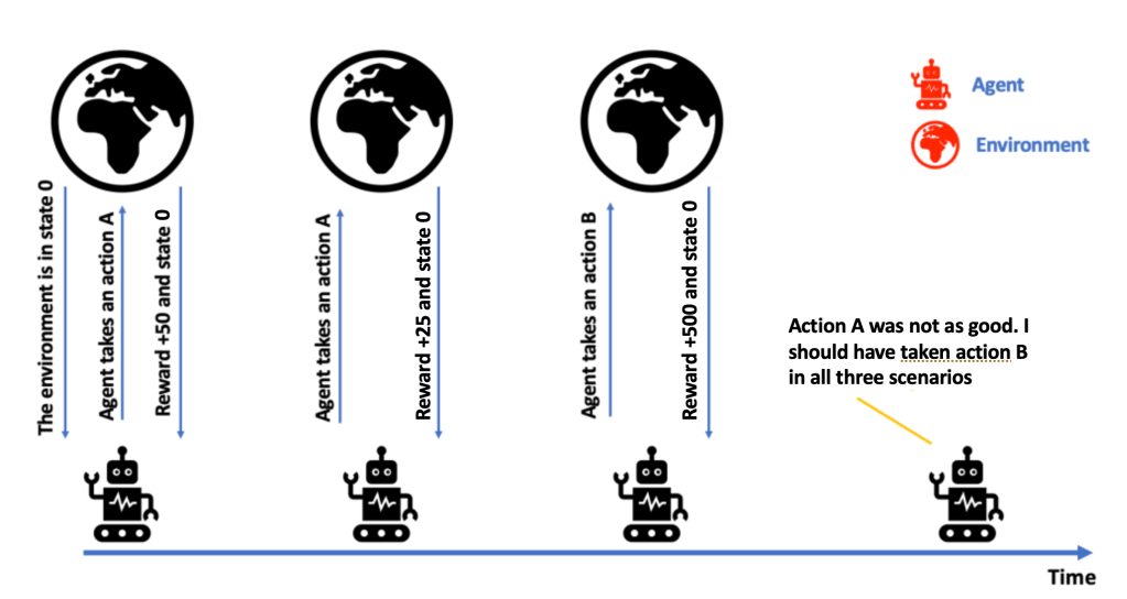 While in the first part of the article, we overviewed what the field of Deep Reinforcement learning is about, we started exploring some fundamental terminology in the second part and third parts. In the fourth part, we explored the temporal credit assignment problem. In the fifth part, we will explore the exploration vs exploitation trade-off.
